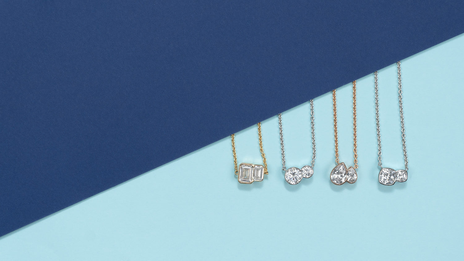 Elevate your collection with the Brillar Bezel Cushion Double Studs Necklace, crafted with lab-grown diamonds...