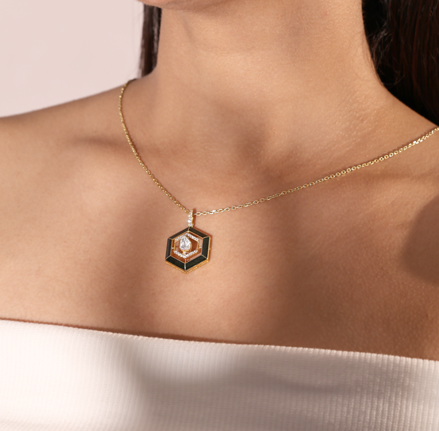 These exquisite Noir Aura Stud Earrings feature raw, uncut diamonds framed by striking black enamel...