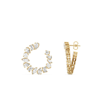 The Multi Shaped Hoop Earrings are a stunning blend of various diamond shapes, making them a fabulous choice for ethnic occasions. Styling Tips: These earrings are perfect for square faces, as their rounded shapes help soften angular features. Clothing & Event: Pair them with flowing silhouettes like anarkali's or maxi dresses to create a harmonious look that balances your overall appearance with tide up hair styled with some flowers and a simple necklace chain. Gifting & Occasions: These earrings make a thoughtful gift for special occasions such as birthdays, bridal showers, or festive celebrations, appealing to women who appreciate unique jewellery. Why Women Love This Design: The combination of different diamond cuts creates a playful yet sophisticated accessory that can be worn with various outfits, making them a beloved addition to any Jewellery collection.